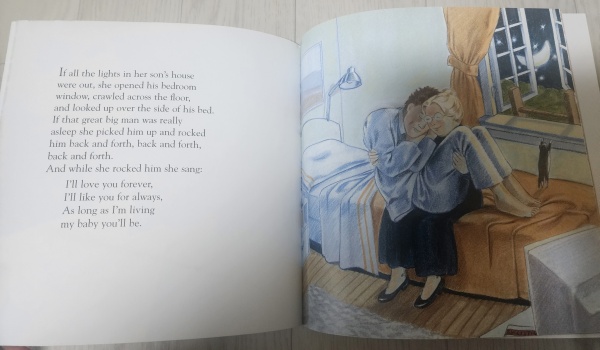 『Love You Forever』는 한 어머니가 아기를 품에 안고 부르는 자장가로 시작됩니다. "I'll love you forever, I'll like you for always, As long as I'm living, my baby you'll be."라는 구절은 책 전체를 관통하는 반복 구절로, 책의 핵심 메시지를 단순하면서도 강렬하게 전달합니다. 어머니는 갓난아기였던 아들을 정성스럽게 돌보며 사랑을 속삭이고, 아이는 점점 자라납니다.