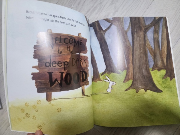 『The Black Rabbit』는 겉보기에 단순한 이야기 속에 깊은 심리적 통찰을 담아낸 작품입니다. 이야기의 중심에는 '그림자'라는 상징적 존재가 놓여 있습니다. 이 그림자는 아이에게 공포의 대상이지만, 사실 언제나 함께해온 '자신의 일부'입니다. 이는 유아기의 중요한 '자기 인식' 과정을 상징합니다. 처음으로 자신과 감정을 분리해서 바라보는 경험은 종종 혼란과 두려움을 동반하기 마련입니다. 하얀 토끼가 자신의 그림자를 외부의 존재로 오해하고 도망치는 모습은 아이들이 내면의 불안을 최초로 마주할 때 보이는 전형적인 반응을 그대로 담아냅니다. 이 그림책의 특별함은 두려움을 단순히 제거하거나 무시하지 않는다는 점입니다. 오히려 두려움을 '직면하고, 이해하고, 받아들이는' 과정을 섬세하게 보여줍니다. 검은 토끼는 결코 사라지지 않고, 대신 그 존재의 의미를 점차 깨닫게 됩니다. 두려움을 극복하는 방법은 그것을 밀어내는 게 아니라, 진심으로 이해하고 자신의 일부로 받아들이는 데 있다는 메시지는 매우 성숙하고 교육적입니다. 필리파 레더스의 일러스트는 이 메시지를 놀랍도록 섬세하게 시각화합니다. 이야기 초반의 푸른 들판과 따스한 햇살은 평화로움을, 검은 토끼의 등장으로 점점 고조되는 대비는 긴장감을 전달합니다. 숲속 장면의 어두운 회색과 검정 톤은 불안을 증폭시키고, 늑대가 나타나는 순간은 이야기의 절정을 장식합니다. 하지만 하얀 토끼가 진실을 깨닫고 검은 토끼와 화해하는 마지막 장면에서는 색채가 다시 따뜻해지며, 시각적 리듬도 안정됩니다. 이 책은 유아 심리 발달 과정에서 흔히 나타나는 '그림자 공포' 현상을 핵심 소재로 활용했다는 점에서 교육적 가치가 높습니다. 실제로 많은 아이들은 두 살에서 다섯 살 사이에 자신의 그림자나 소리, 움직임에 과도하게 반응하는 시기를 겪습니다. 『The Black Rabbit』 같은 책은 이런 감정을 정서적으로 순화시키는 훌륭한 도구가 됩니다. 아이들은 하얀 토끼를 통해 자신을 투영하고, 그림자와 화해하는 과정을 따라가며 심리적 안정감을 얻게 됩니다.『The Black Rabbit』은 단순한 동화를 넘어, 성장 과정에서 누구나 겪는 감정의 흐름과 그 감정에 어떻게 대면하고 이해할 수 있는지를 보여주는 정서 교육서입니다.