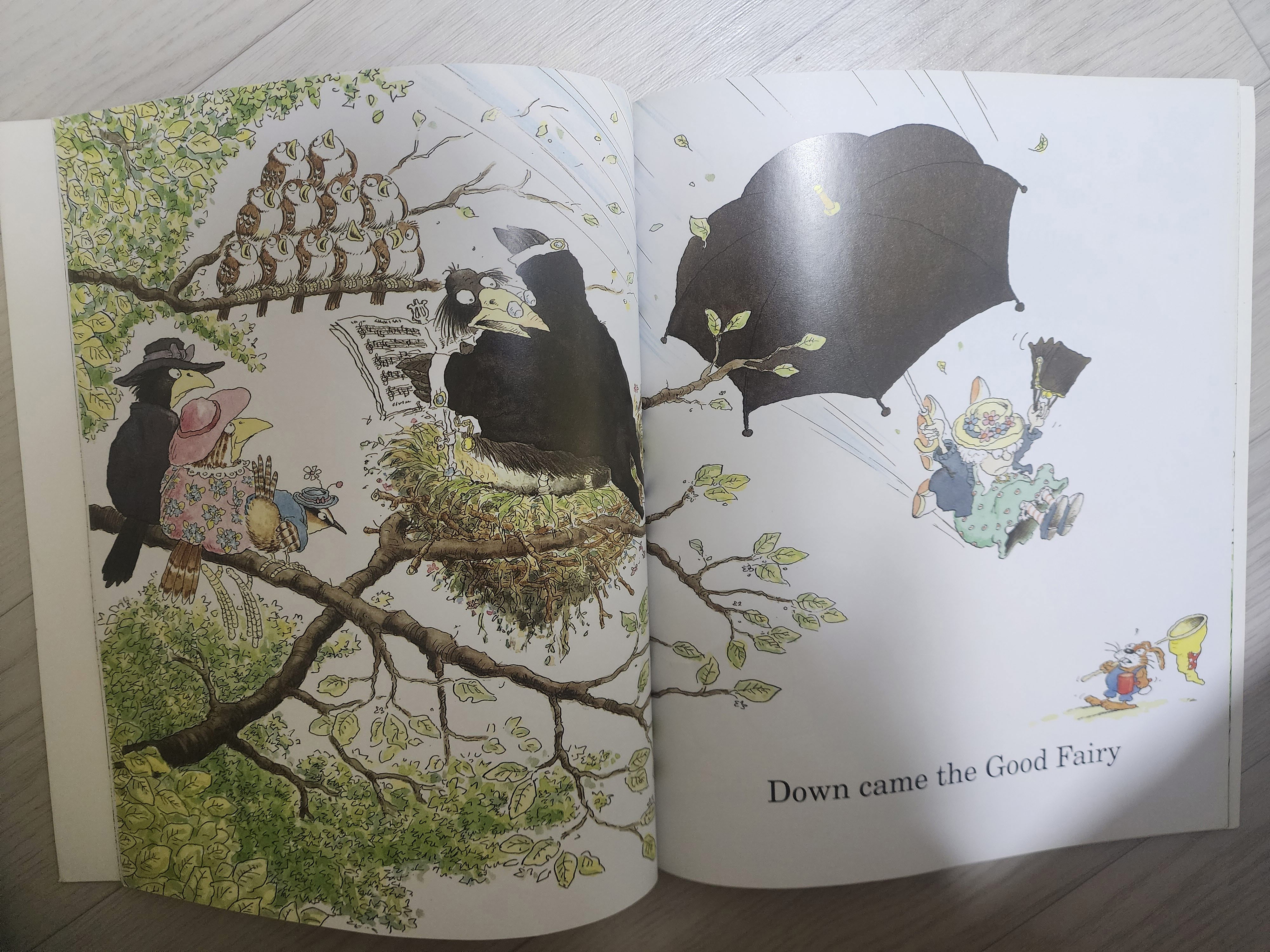 동화적 상상력으로 가득한 Tony Ross의 일러스트는 이야기의 유머를 시각적으로 한층 더 부각시키며, 등장인물들의 표정과 몸짓은 각 장면에 생명력을 불어넣습니다. 특히 푸푸의 장난에 따라 변하는 동물들의 반응이나, 점점 화가 고조되는 요정의 표정은 어린 독자들에게 감정을 생생하게 전달합니다. 마지막 장면의 푸푸가 goonie로 변하는 모습은 다소 충격적이지만, 아이들에게는 예상치 못한 반전으로 큰 웃음을 선사합니다.